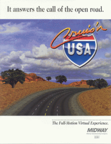 Progettato dal leggendario Eugene Jarvis (creatore, fra gli altri, di "Robotron" e "Defender"), Cruis'n USA é un gioco di corse da punto a punto con 14 percorsi separati ambientanti in numerose differenti localitá degli USA.
