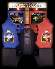 Cyber Sled venne realizzato solo in un cabinato dedicato con i seggiolini per due giocatori. I moduli di plastica intorno allo schermo e i doppi joysticks danno l'illusione di pilotare un carro armato futuristico. La postazione del primo giocatore e' tutta blu e quella del secondo e' tutta rossa. Diversamente dai successivi cabinati con seggiolini in stile 'guida', i seggiolini non sono regolabili.
