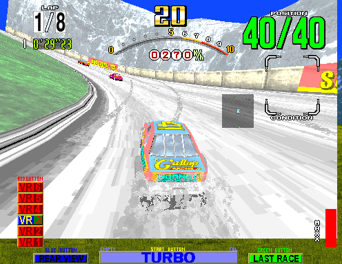 Daytona USA - To The Maxx : 2001 Edition e' un hack non ufficiale di "Daytona USA" che aggiunge un pulsante del Turbo e molte modalita' di gioco, una ghost car per il tuo giro piu' veloce, una visuale posteriore e 4 modalita' di visuale in piu' ed e' sorprendentemente giocabile.... Aggiunge una barra in basso in centro, e' il carburate del turbo, e le barre rosse sui lati sono le visuali extra, il tachimetro digitale e' stato cambiato.