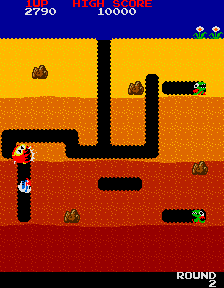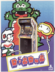 Dig Dug NON fu il primo gioco che Atari prese in licenza dalla Namco, come si crede solitamente. Questo onore ando' a F-1, il gioco di corsa '3D' che proiettava una corsa su tracciato su uno schermo usante una pellicola scorrevole. A nessuno nella divisione coin-op di Atari piaceva Dig Dug, eccetto Brian Mcghie (che in seguito passó a Starpath) e Owen Rubin. Fu McGhie che diede i ritocchi finali a Dig Dug. Rubin possiede ancora oggi un prototipo di cabinato verticale di Dig Dug con decorazioni disegnate a mano, e lo considera ancora uno dei suoi giochi preferiti di tutti i tempi.