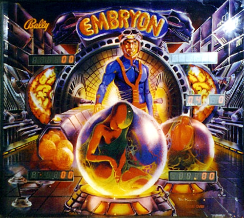 Pubblicato nel Giugno 1981, Embryon fu il primo gioco di Bally ad utilizzare illustrazioni di Tony Ramunni e fu il primo (e ultimo) gioco di questa compagnia ad utilizzare il sistema di salvataggio biglia 'Flipsave' (marchio registrato) - una piccola paletta nella corsia di uscita destra utilizzata dai giocatori per rilanciare biglie perse verso la corsia di ritorno.