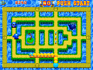 "Ecco. Ne avrai bisogno". Un moderno remake del classico di Stern Electronics "Anteater", questo gioco pacioccoso e' caratterizzato da battaglie con i boss, punti di ingresso multipli, un'allegra colonna sonora e grafica vivace.