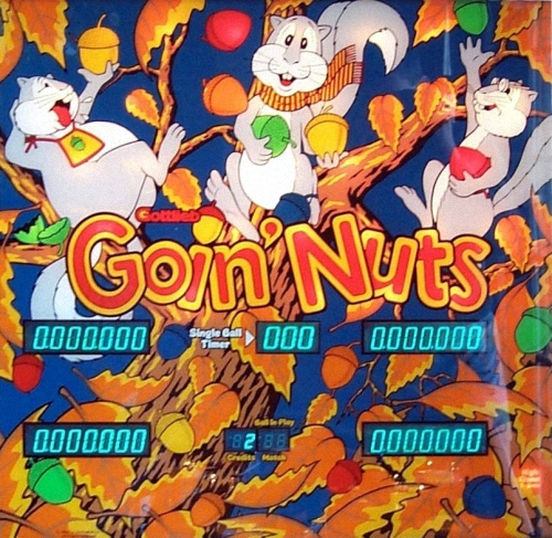 Goin' Nuts e' un tavolo unico nel suo genere che offre un sistema di gioco basato sul tempo. Quando la partita inizia, tre biglie, chiamate scoiattoli, sono lanciate automaticamente. Ogni bersaglio nocciola che colpisci aggiunge 3 secondi al contatore. I tuoi scoiattoli stanno raccogliendo noccioline. Quando perdi uno scoiattolo, i rimanenti due guadagnano 2 secondi per ogni nocciolina che colpisci. Detto chiaro e semplice, quando hai due o tre scoiattoli in movimento, raccogli noccioline e accresci il contatore. Quando ti rimane un solo scoiattolo, la tua strategia deve cambiare. L'obiettivo e' di rilanciare una modalita' multi-scoiattolo prima che il contatore arrivi a 0. Le modalita' multi-scoiattolo possono essere rilanciate in molti modi differenti. Quando e' acceso, ottenere un rollover rilancera' la modalita' a due scoiattoli.