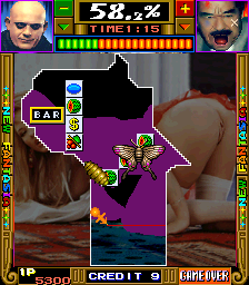 Una variazione per adulti - una di molte pubblicate da questa compagnia - del classico di Taito del 1981 "Qix" (e in seguito di "Gals Panic" di Kaneko), nella quale i giocatori devono "colorare" sezioni dello sfondo per rivelare un'immagine digitalizzata di una donna nuda in posa erotica. Come in "Qix" e nei suoi seguiti, i livelli di Fantasia sono popolati da numerosi nemici che devono essere evitati o distrutti. Oltre che contro i nemici, i giocatori combattono anche uno stretto limite di tempo.