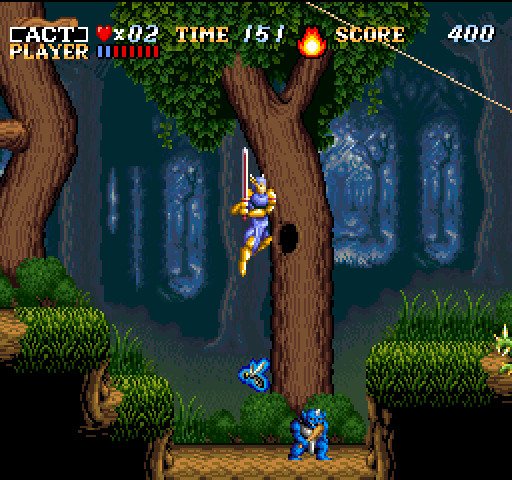 Prima ripulisci il paese mandando il tuo spirito dentro un guerriero con una grande spada e poteri magici. Questa parte a scorrimento laterale mette il giocatore in molti luoghi diversi, da paludi e foreste a piramidi e cime innevate.