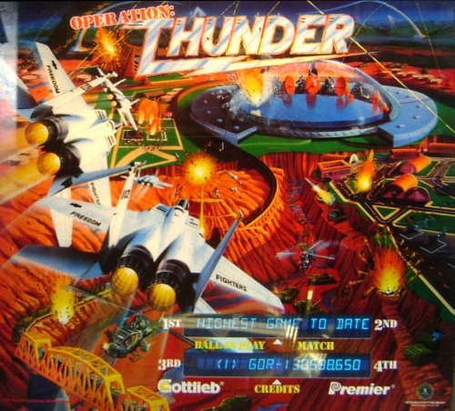 History.dat Operation Thunder (c) 1992 Premier Technology. - DATI TECNICI - Gottlieb System 3 (Alphanumeric) Processore Principale : M65C02 (@ 2 MHz) Processore Audio : (2x) M6502 (@ 2 MHz) Chip Audio : (2x) DAC, YM2151 (@ 4 MHz), OKI6295 (@ 8 KHz) - STAFF - Progettista : Ray Tanzer Illustrazioni : David Moore, Constantino Mitchell Software : Bob Wilson Suoni : Craig Beierwaltes, Dave Zabriskie - FONTI - Rom del gioco. |