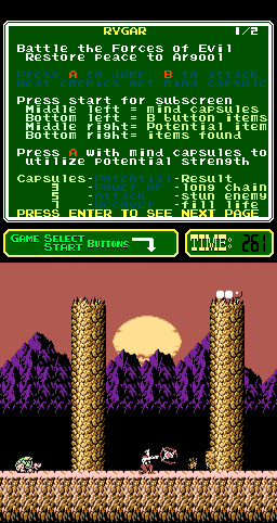 Dotato di una letale arma simile ad una mazza ferrata, unita ad un affilato disco rotante, Rygar il guerriero deve combattere attraverso 27 livelli a scorrimento laterale, uccidendo le vaste ondate di mostri nemici che lo attaccano.