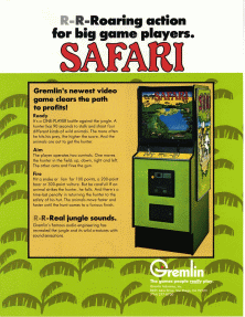 Questa pubblicazione del Giugno 1977 fu un'associazione in partecipazione fra Sega e Gremlin. Era distribuita in un cabinato dedicato verde con un'immagine laterale di un cacciatore in una giungla. Questo potrebbe essere stato il primo gioco ad utilizzare joystick gemelli. Il primo era un joystick a 4 direzioni che controllava il movimento del tuo cacciatore, mentre il secondo era un joystick a 2 direzioni con un pulsante di fuoco montato sulla cima. Questo era usato per mirare e sparare. Questo gioco utilizza un overly per produrre l'effetto del paesaggio.