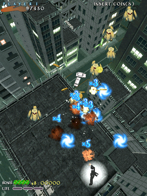 * Sistema di tensione : é attivato quando ti avvicini ai nemici, proiettili e ad elementi dello scenario. Quando il sistema di tensione é attivo, appare un'aura intorno al giocatore. Attiva anche un moltiplicatore bonus - da 2x a 8x - che influenza il punteggio relativo ai nemici distrutti e alle monete raccolte. Quando ottieni il moltiplicatore 8x viene attivato uno sparo rapido e piú potente e l'aura diventa rossa.