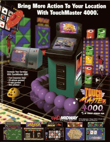 History.dat Touchmaster 4000 (c) 1998 Midway Games. - DATI TECNICI - Processore Principale : 68000 (@ 12 Mhz) Chip Audio : OKI6295 (@ 8.5 Khz) Colori palette : 2048 - SERIE - 1. Touchmaster (1996) 2. Touchmaster 3000 (1997) 3. Touchmaster 4000 (1998) - FONTI - Rom del gioco. |