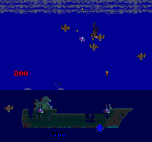 Quando inizi una partita, il tuo caccia volera' nello schermo dal lato sinistro. Ci sara' una breve attesa, quindi una nave entrera' dal lato sinistro. Ora e' il momento di mettere la nave sul fondo del mare. Queste strategie sono valide sia per la partita ad un giocatore che a due giocatori. La sola differenza é che nella partita a due giocatori sono necessarie piu' falle per affondare una nave e che il secondo giocatore entra dal lato destro dello schermo.