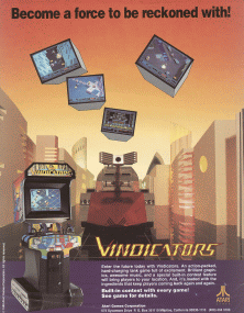 Un cabinato di Vindicators e' presente nello show di Nickelodeon "All That" (dal 1997 al 2000). Presentava tuttavia una marquee fittizia realizzata appositamente per lo show.